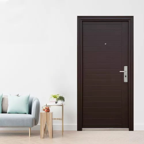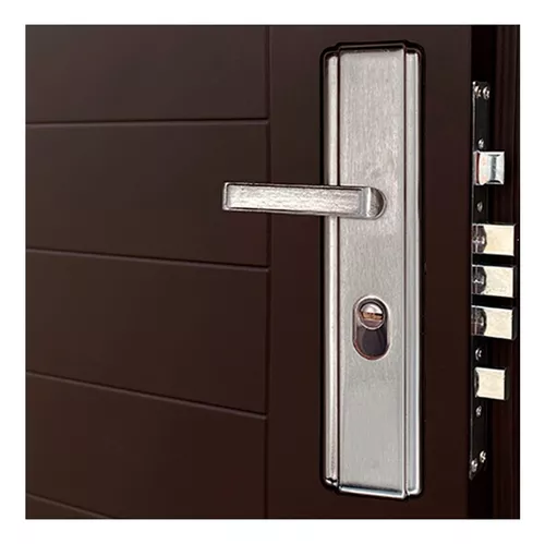 Puerta de seguridad, fabricada de acero 100%. Incluye cerradura de seguridad con 9 pasadores de seguridad en 4 niveles. Bisagras reforzadas ocultas en marco, si la puerta está cerrada, las bisagras quedan ocultas en el marco y no se pueden manipular. Manija exterior de acero. La puerta incluye el marco de acero con chambrana exterior. Incluye juego de llaves de puntos y mirilla telescópica, revisa quien toca a tu puerta antes de abrir. Pintura calidad automotriz marca Axalta, ideal para uso en interior o exterior. Incluye material aislante acústico y térmico Honeycomb para mantener estable la temperatura al interior de tu casa.