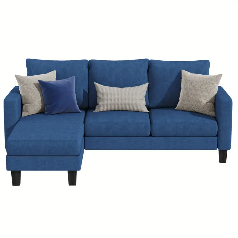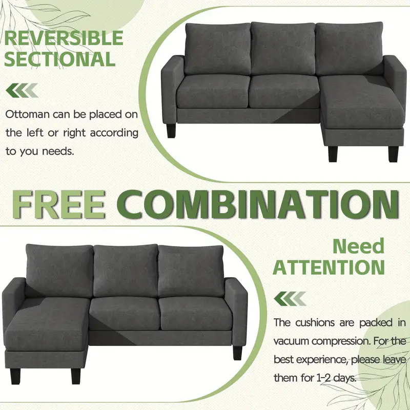Sofá seccional convertible, sofá de 3 plazas en forma de L con tela de lino, otomana móvil Sofá pequeño para apartamentos pequeños, sala de estar y oficina (gris oscuro)