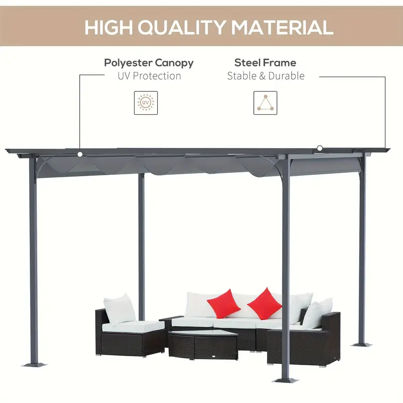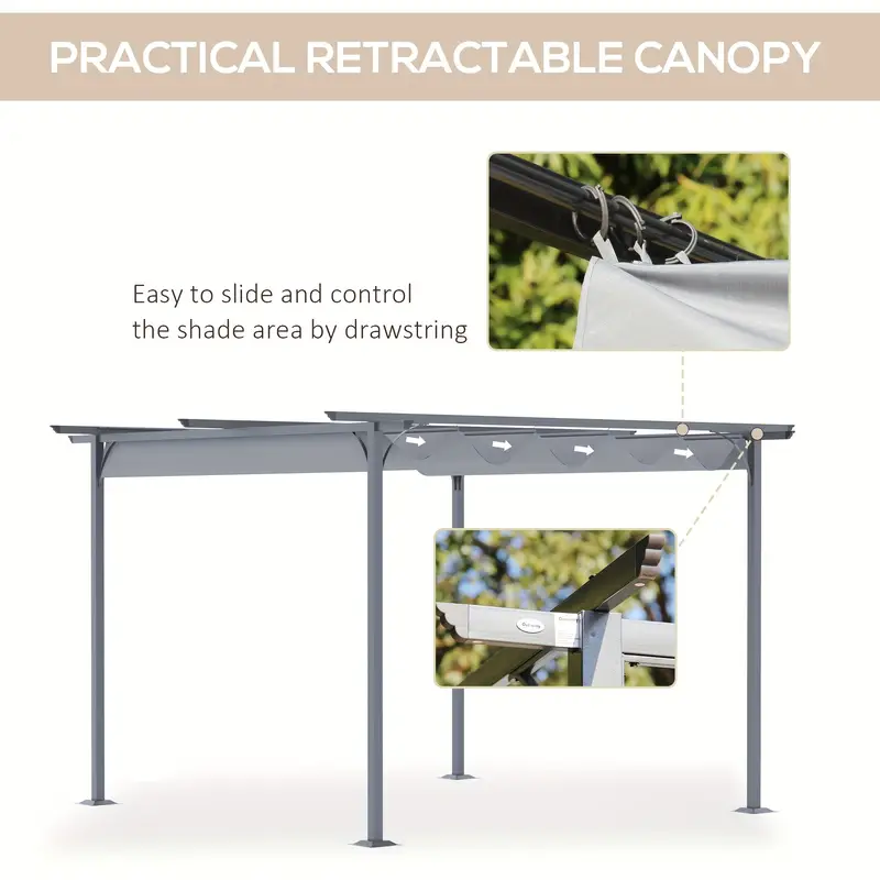 11.5' x 11.5' Pérgola retráctil para exteriores, Toldo de metal para patio, Refugio para fiestas en el porche, Jardín, Gazebo para parrilla