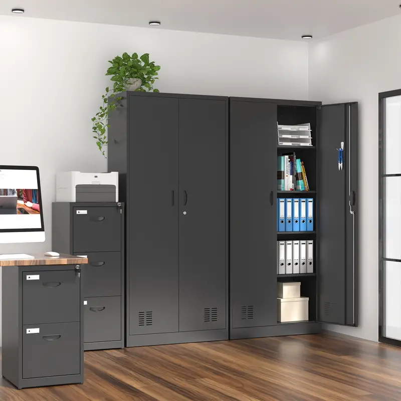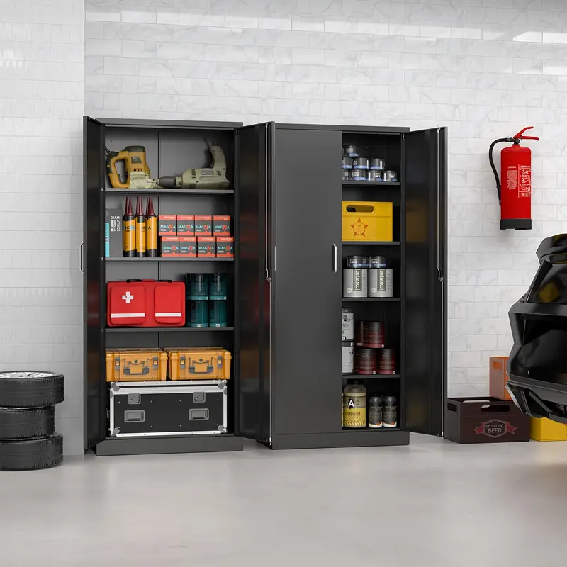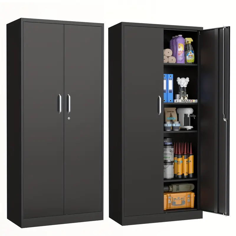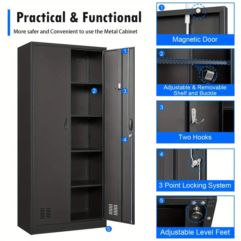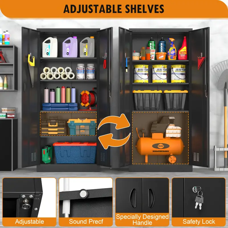 【Almacenamiento multiusos】: Este gabinete de almacenamiento de metal negro organizará en gran medida su archivo de oficina, refrigerios de despensa y herramientas de garaje, lo que es adecuado para usar en múltiples escenas como gabinete de herramientas, gabinete de garaje, gabinete de oficina en casa, gabinete de archivos, gabinete de despensa, etc.