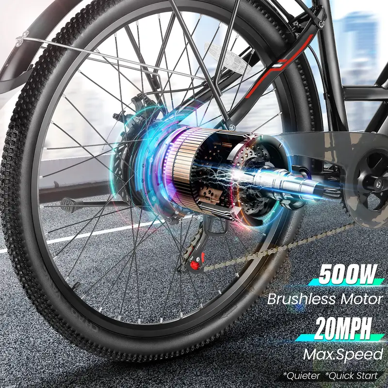 Bicicleta eléctrica para adultos, motor de 500W, Ebike de 26 con batería de 48V, velocidad de 20MPH, bicicleta eléctrica para hombres y mujeres detalles 0