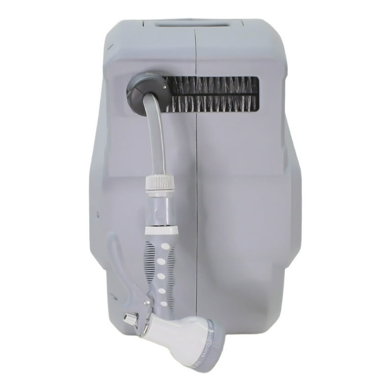 - SISTEMA AUTOMÁTICO RETRACTIL. Olvídate de los molestos enredos de manguera. Nuestro carrete cuenta con un sistema retráctil que te permite enrollar la manguera de forma autónoma, fácil y rápida, manteniendo todo organizado y listo para el próximo uso. Cuenta con cerdas limpiadoras en la salida y entrada de la manguera para siempre tener limpio el mecanismo interno del carrete retráctil.