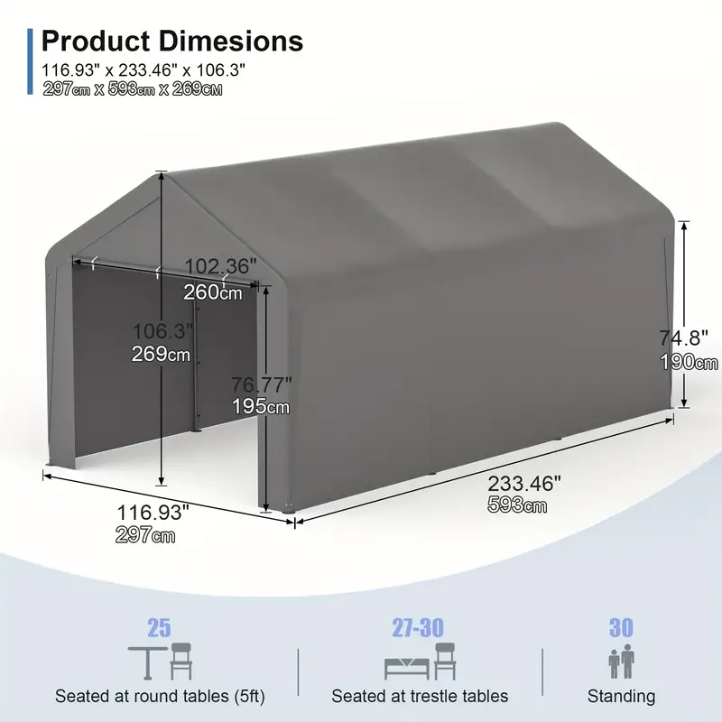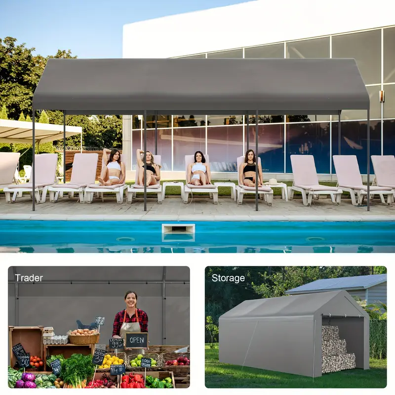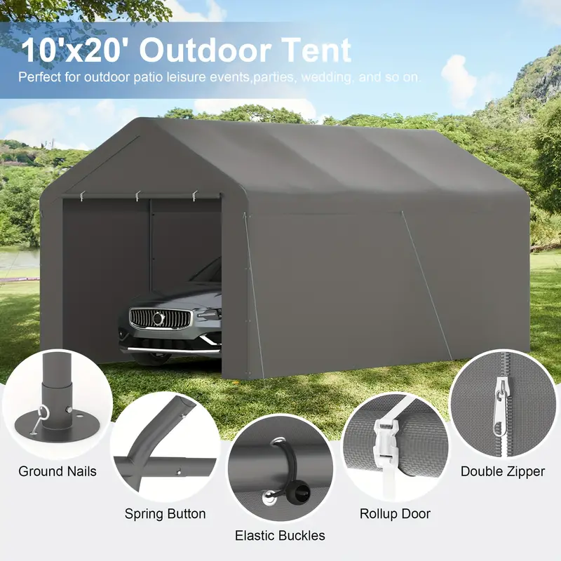 Coche gris para exteriores 10'x20' Toldo de alta resistencia Cobertizo Garaje portátil Tienda de fiesta