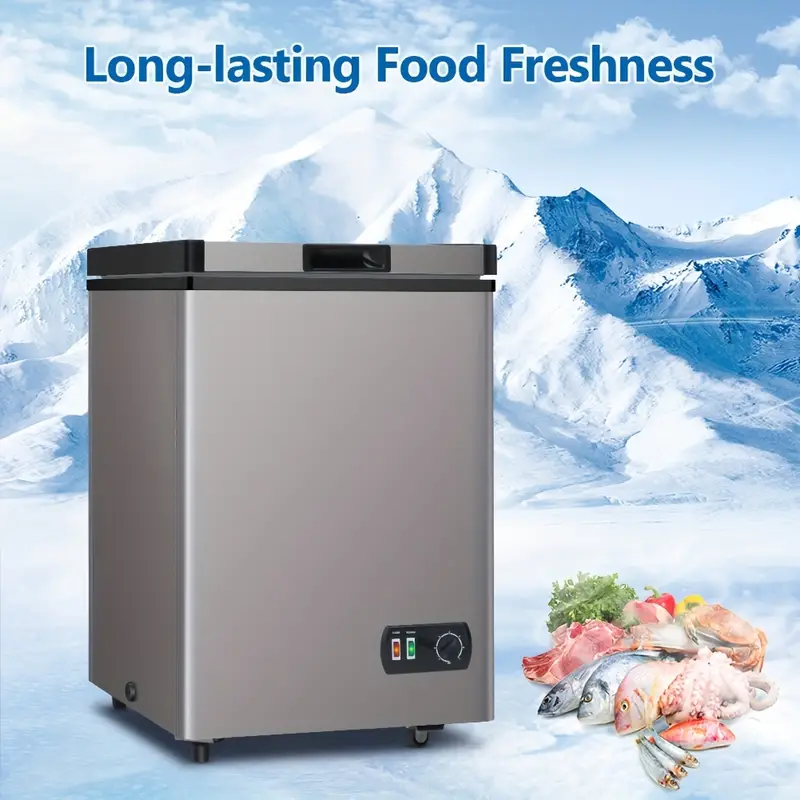 Congelador Compacto de Gran Capacidad - 7 Controles de Temperatura, Ahorro de Energía, Cesta Extraíble, Diseño de Puerta Superior - Ideal para Hogar, Cocina, Oficina, Dormitorio, Apartamento de Uso Interior, Gris