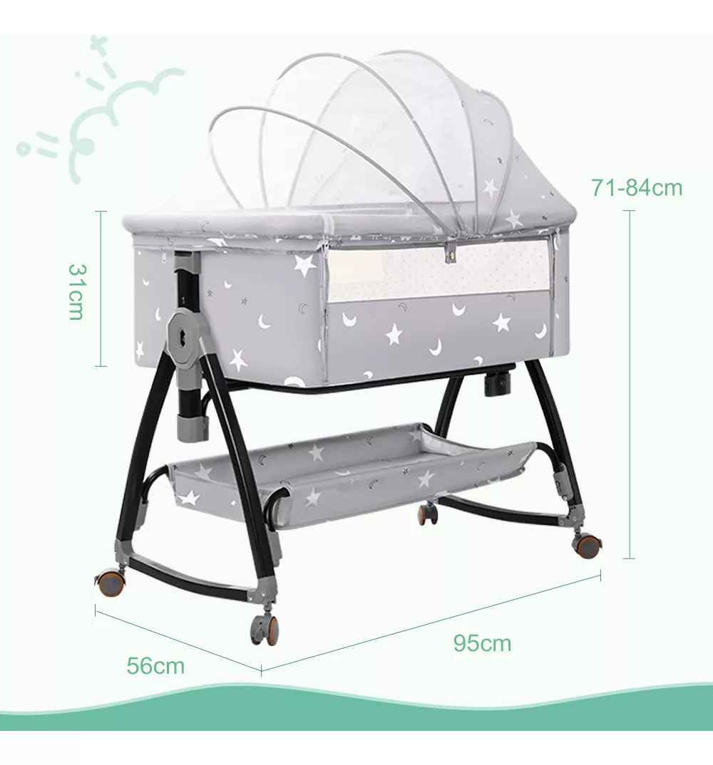 La cuna colecho tiene una función de mecedora que ayuda a calmar y relajar al bebé. Con movimientos de balanceo, proporciona comodidad y seguridad, facilitando la transición hacia el sueño. También puede utilizarse para arrullar al bebé durante la alimentación o momentos de calma etc.
