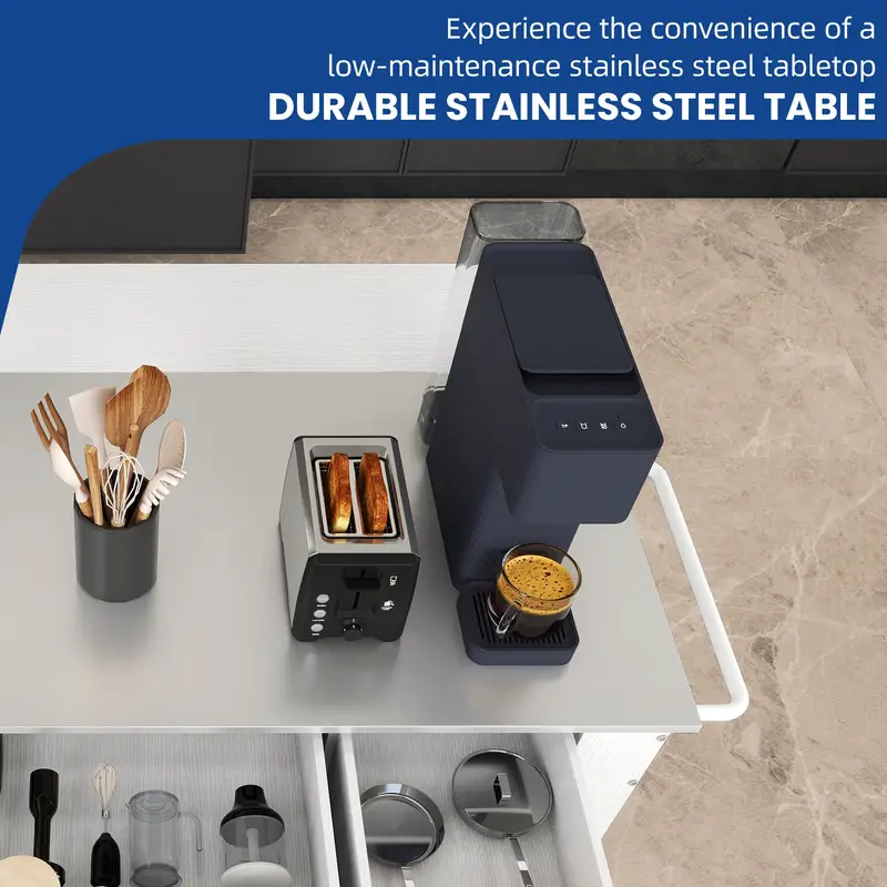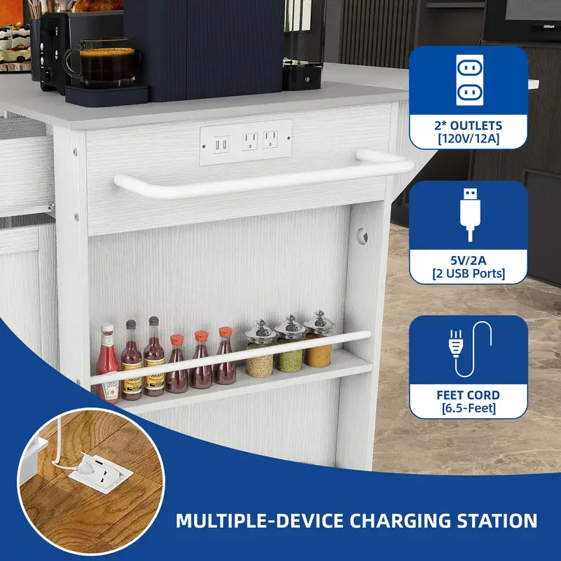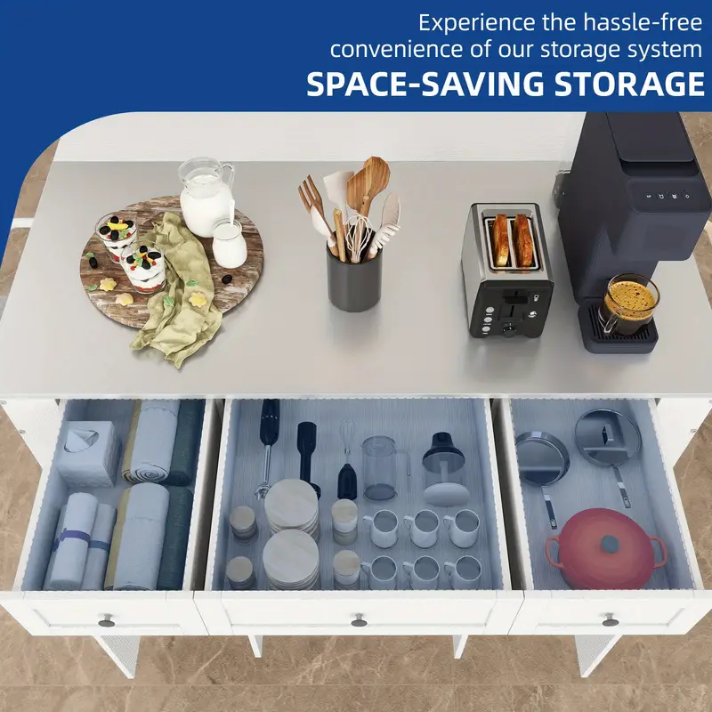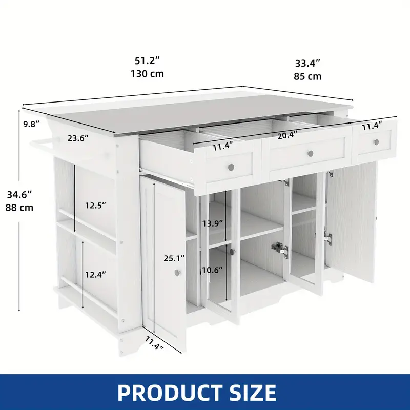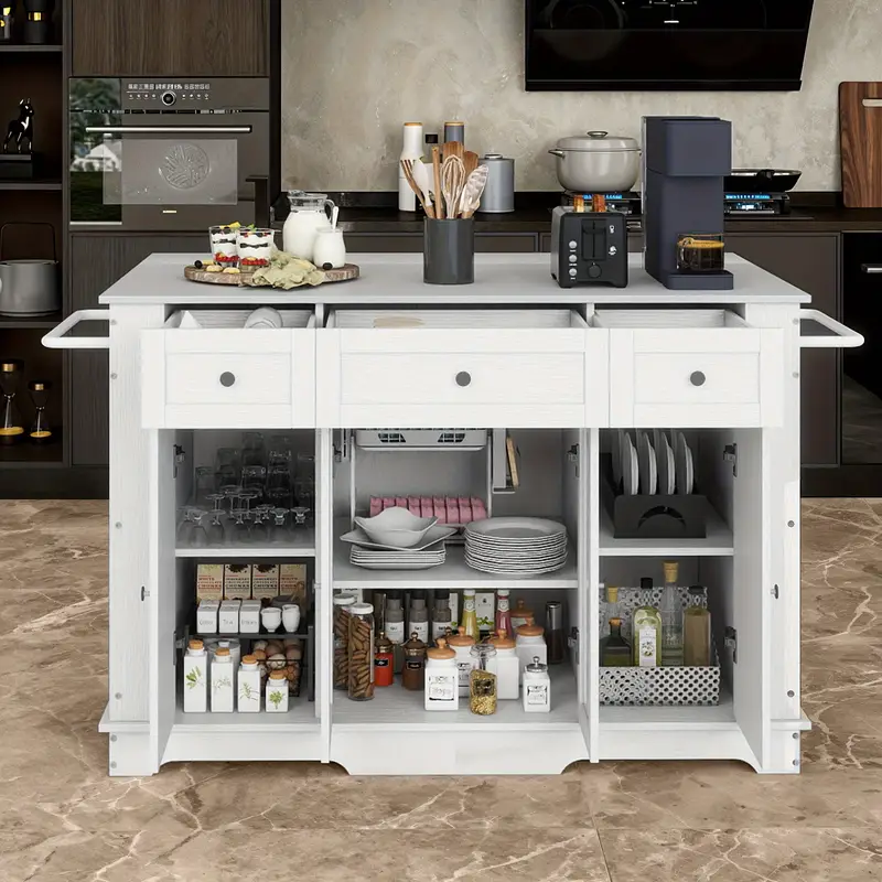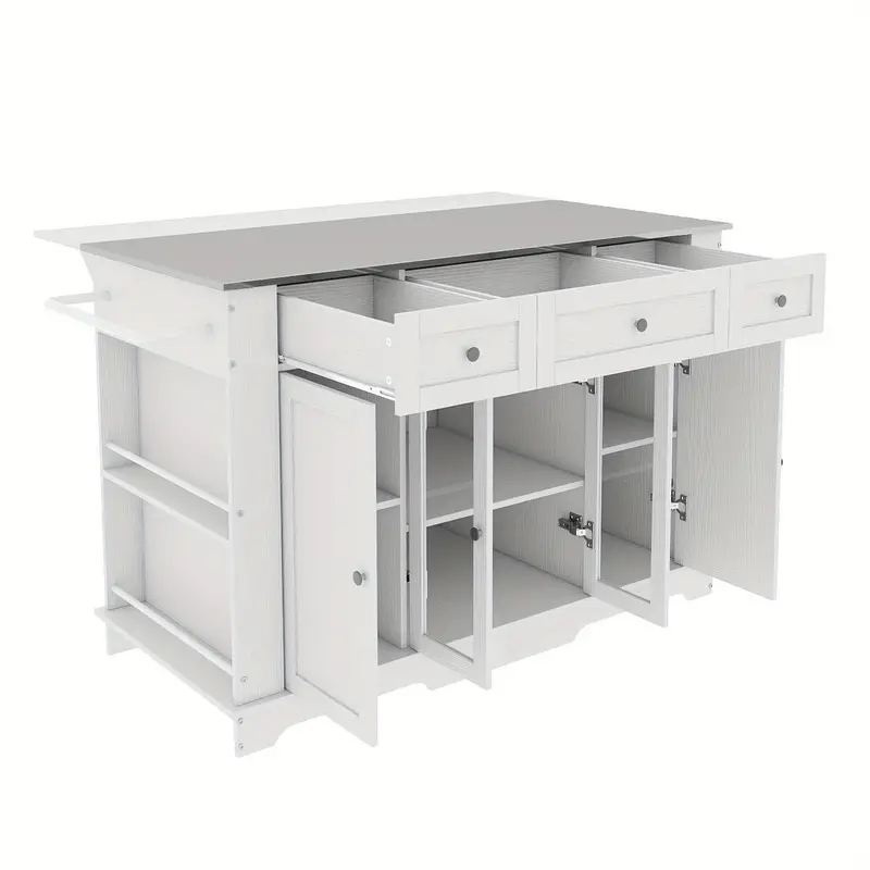 Especificaciones: Color: Blanco Forma: Rectángulo Materiales: MDF laminado y tablero de partículas El paquete incluye: 1x Isla de cocina 1x Manual de instalación 1x Paquete de accesorios