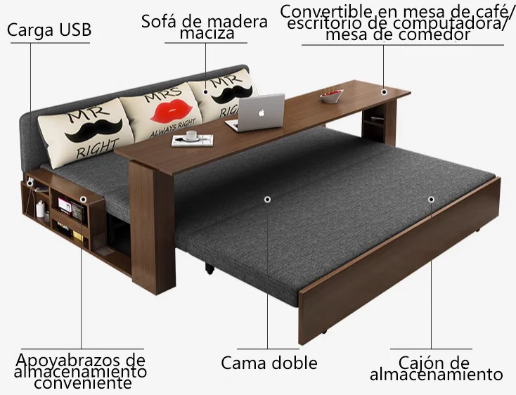 Nuevo sofá cama con almacenamiento, atención meticulosa de adentro hacia afuera.