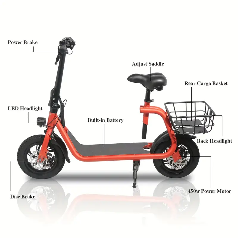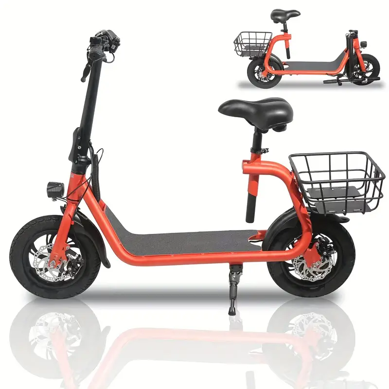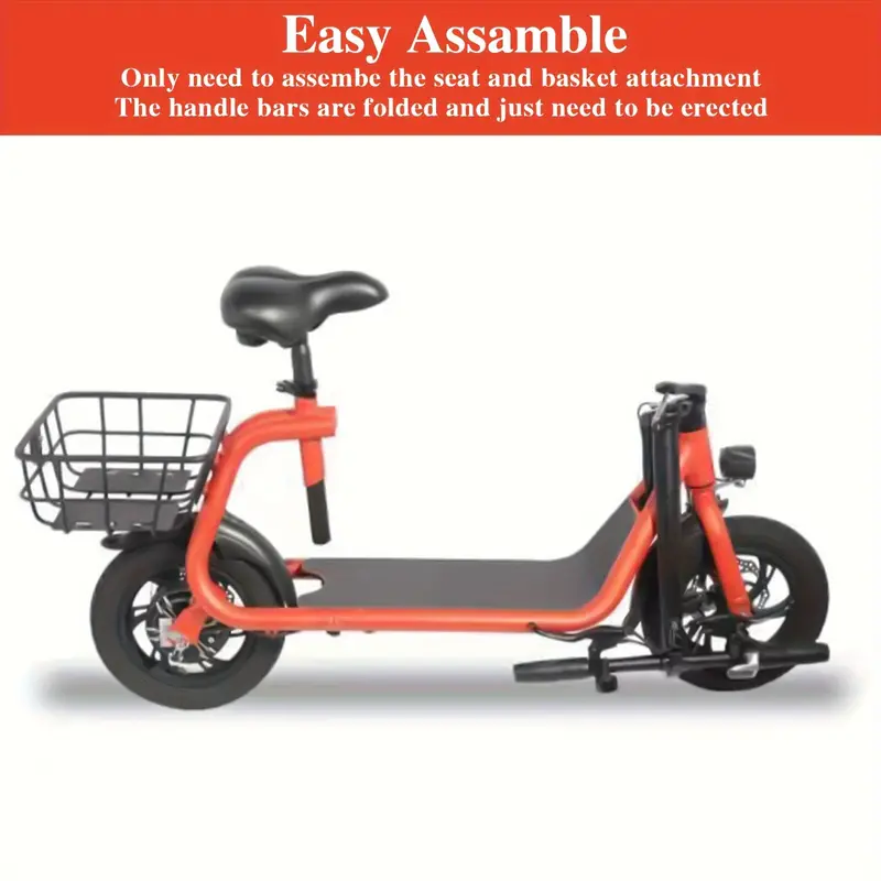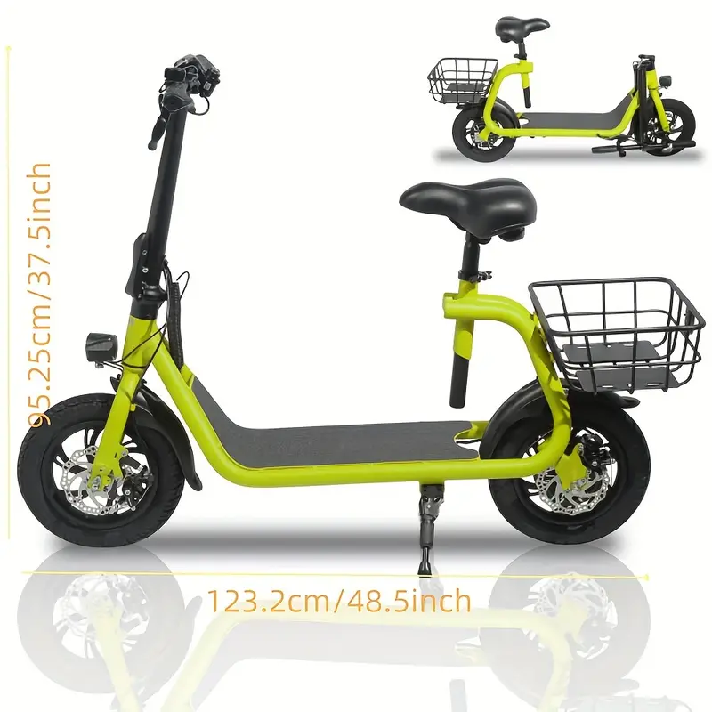 Los neumáticos neumáticos de 12" tienen un agarre excelente, alta elasticidad y resistencia al desgaste. Mientras tanto, este scooter para adultos viene con un asiento de altura ajustable y una plataforma ancha antideslizante, que es perfecta para cualquier altura de ciclista. Hay una gran cesta trasera.
