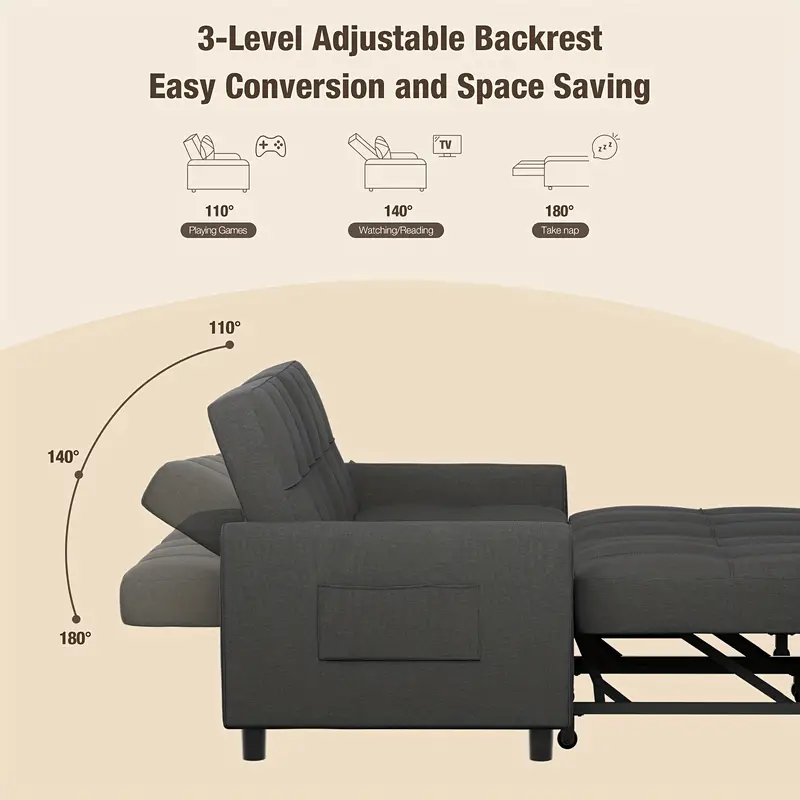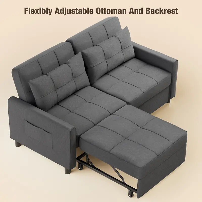 Sofá cama extraíble de 2 plazas, sofá cama convertible, sofá de 2 plazas de 58" con otomana independiente y respaldo ajustable, sofá cama 3 en 1, para sala de estar, apartamento pequeño, gris oscuro