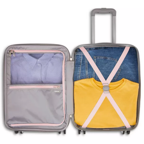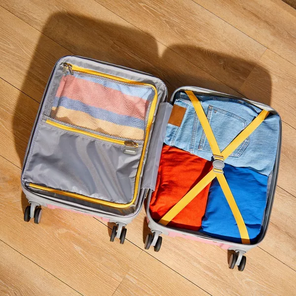 Modern Printed Hardside Carry-On Spinner is perfect for a 1-3 day trip, with everything you need to make your quick getaway stress free and fun! RightHeight™ handle system with multi-stop adjustments allow you to extend the handle to a height that is customized to roll you confidently with our wear and tear tested dual spinner wheel. It delivers maximum stability and comfort. Smooth operator for hands of all kinds, our large zipper pulls are effortless to use.w99
