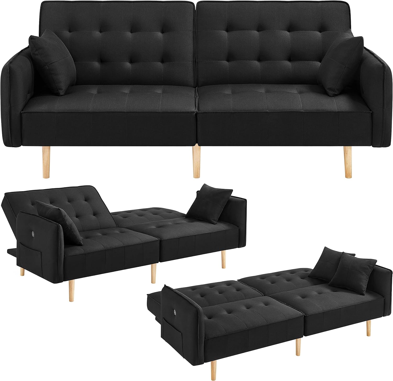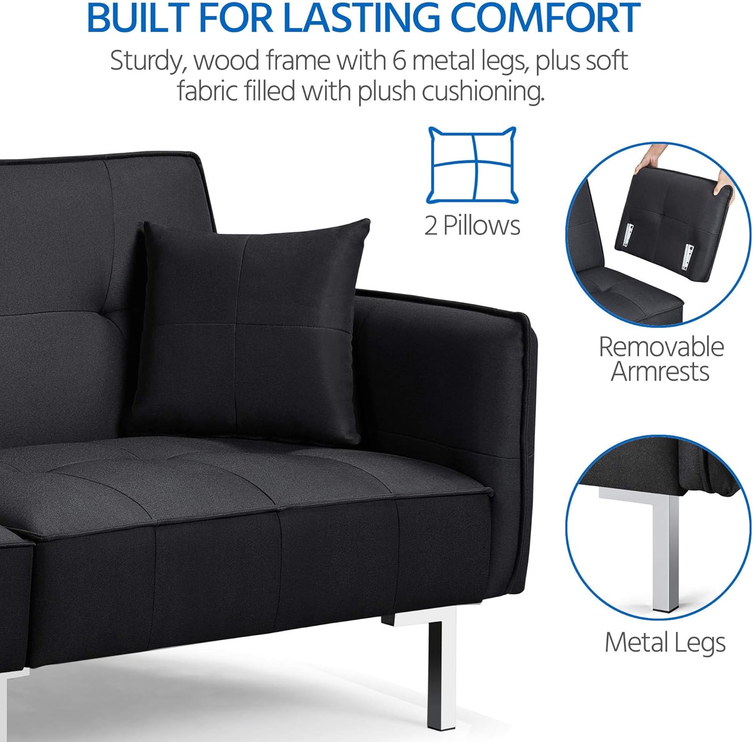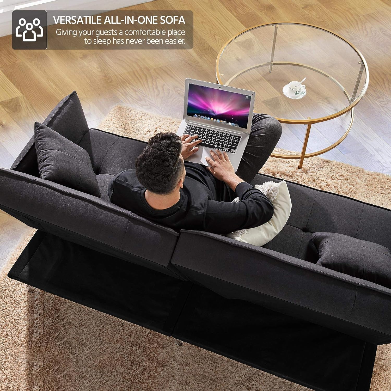 - Diseño de respaldo ajustable: la futón de la sala de estar está diseñada con un versátil ajuste de ángulo de respaldo de 3 posiciones. Un ángulo de 105 grados proporciona a tu espalda una posición ligeramente reclinada regularmente. Una posición reclinada de 140 grados podría poner menos estrés en la columna vertebral. La posición plana de 180 grados hace que el sofá sea cómodo para dormir.