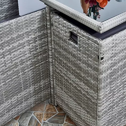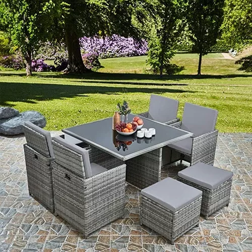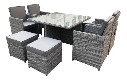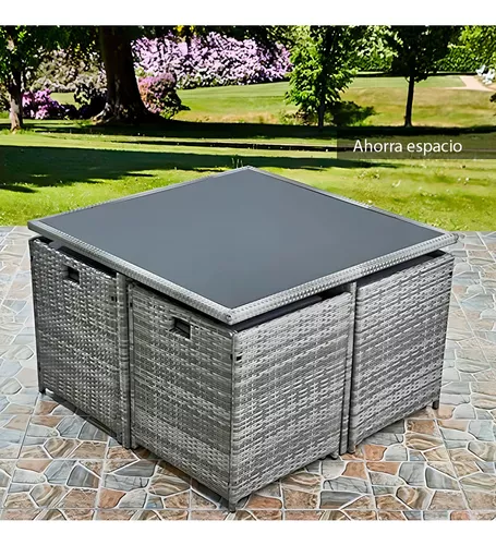 • Fabricado en poliratán, material que requiere poco mantenimiento y es sencillo de limpiar con un paño húmedo. Incluye instrucciones para el montaje por cuenta propia. Ideal para disfrutar en el jardín con familiares y amigos.