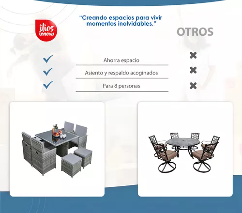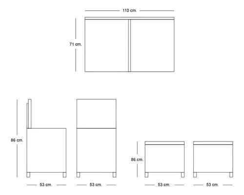 • MESA: Altura 71 cm x Largo 110 cm x Ancho 110 cm.