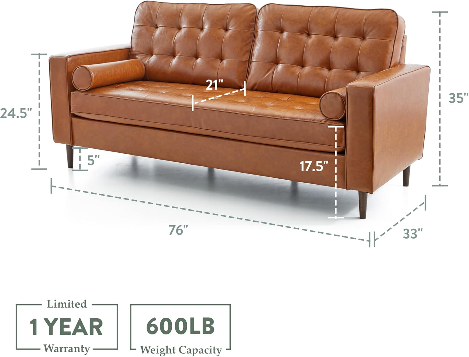 • PRODUCT DIMENSIONS: Each piece of this compact living room furniture set has a 1-year warranty and can stand alone or be paired with its matching accent pieces; sofa measures 33"D x 76"W x 35"H