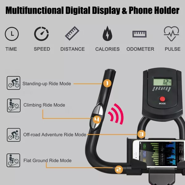Multifunctional Display & Phone Holder: The digital display shows time, distance, speed, odometer, pulse and calories to help you monitor your exercise data. The grips on both sides can record the heart rate for you to adjust the rhythm of exercise. The phone holder allows you to listen to music and watch videos while exercising.