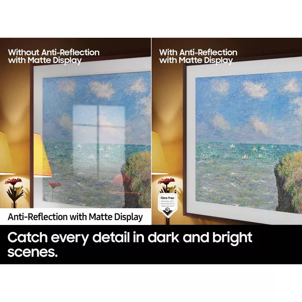 Anti-Reflection with Matte Display - Enjoy more visibility of your QLED 4K TV with 100% Color Volume with virtually no light reflection, night or day. The premium Matte Display Film limits light distraction by reducing glare from all your shows, contents, and works of art.* *QLED televisions can produce 100% Color Volume in the DCI-P3 color space, the format for most cinema screens and HDR movies for television.