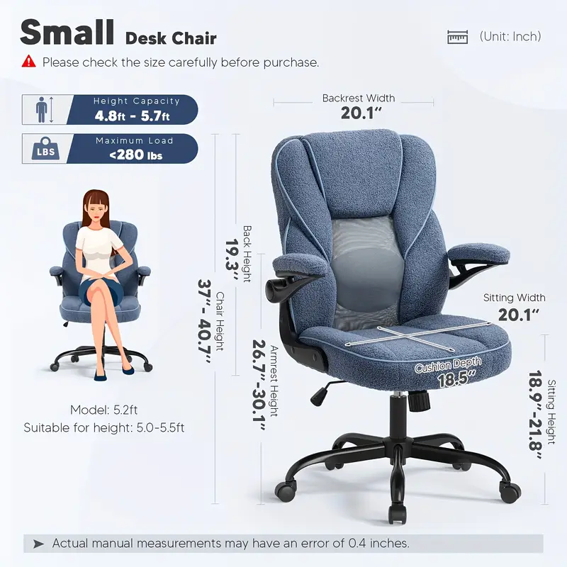 Silla de   Ejecutiva Ergonómica con Brazos y Ruedas - Cómoda, Altura Ajustable, Malla Transpirable y Forro Polar Teddy, Silla   para Escritorio en Casa -   detalles 4