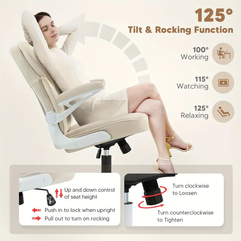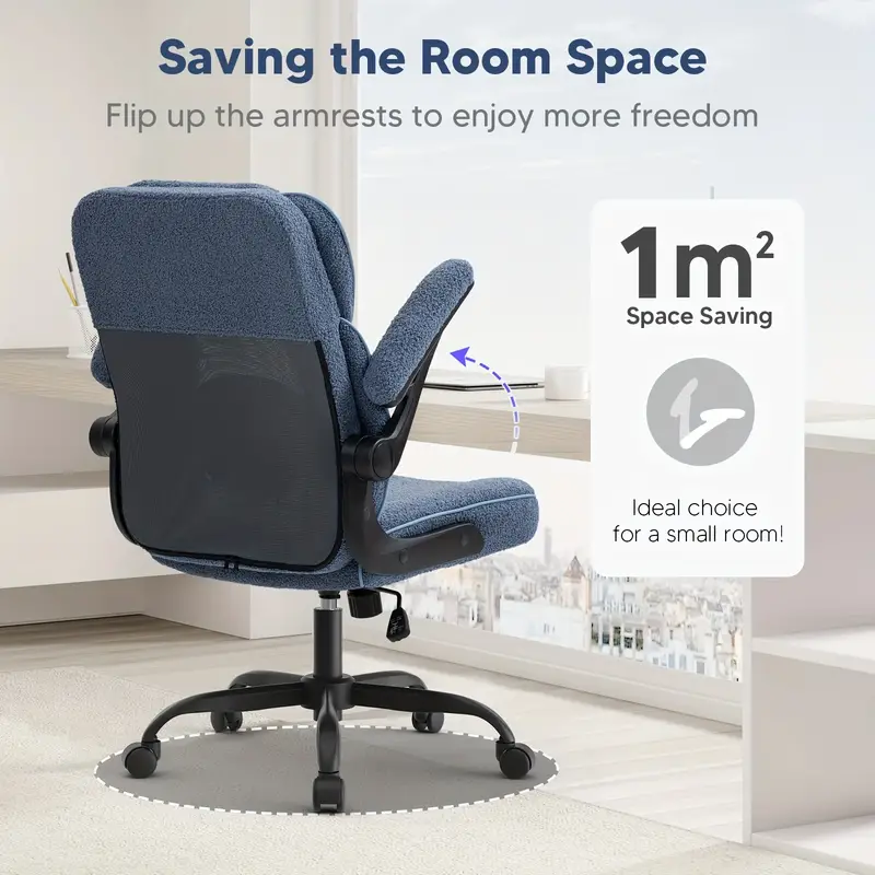 Silla de   Ejecutiva Ergonómica con Brazos y Ruedas - Cómoda, Altura Ajustable, Malla Transpirable y Forro Polar Teddy, Silla   para Escritorio en Casa -   detalles 7