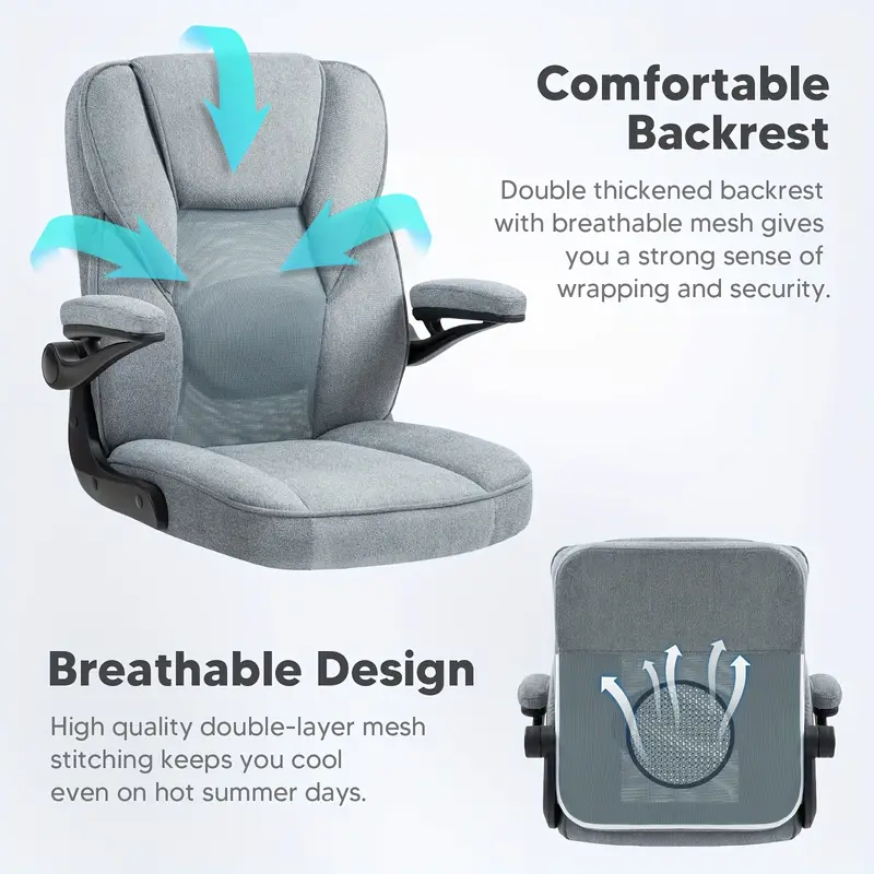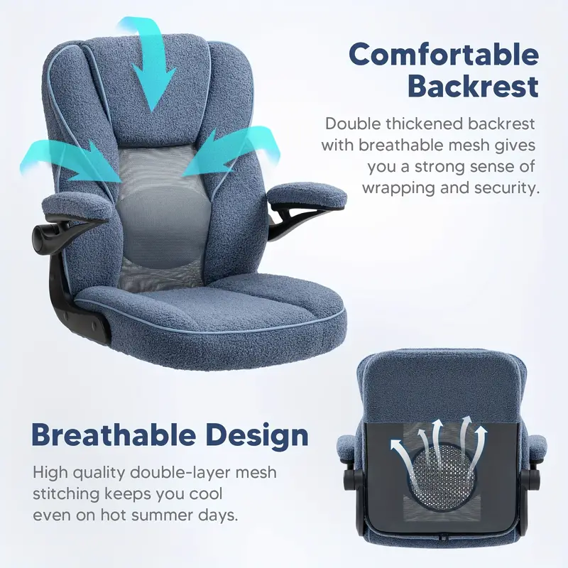 Silla de   Ejecutiva Ergonómica con Brazos y Ruedas - Cómoda, Altura Ajustable, Malla Transpirable y Forro Polar Teddy, Silla   para Escritorio en Casa -   detalles 3