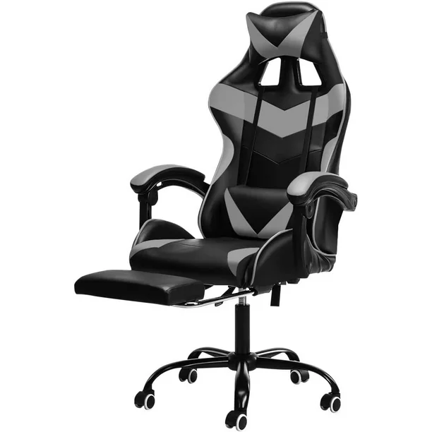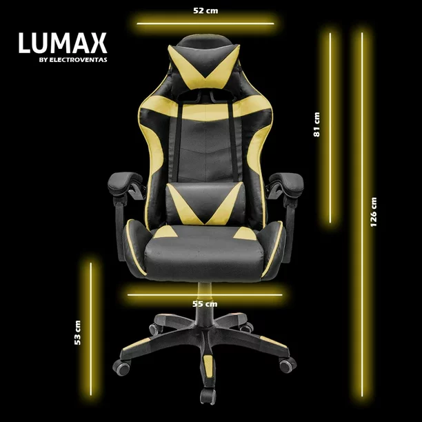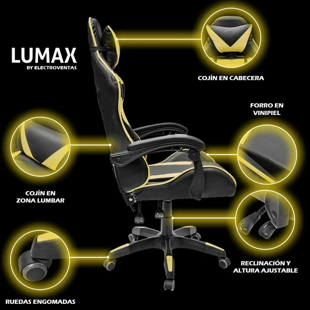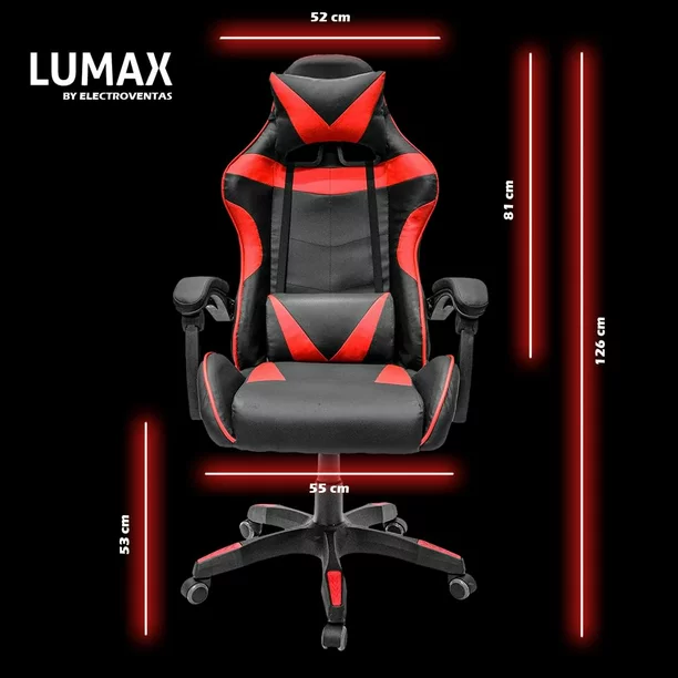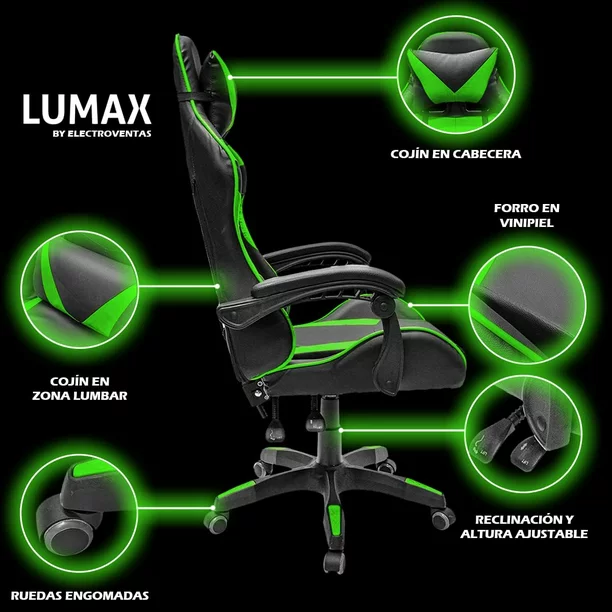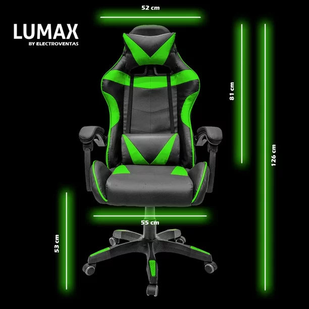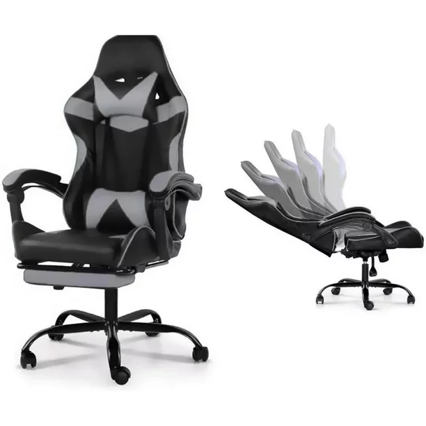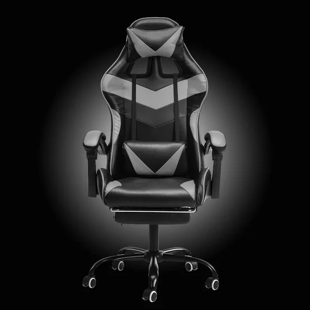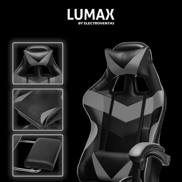 Silla Gamer Ergonómica Con Reposa Pie Giratoria con Ángulo de Inclinación Máxima de 155° con Cojín Lumbar y Cervical Soporta hasta 110Kg Lumax Color Gris con Negro