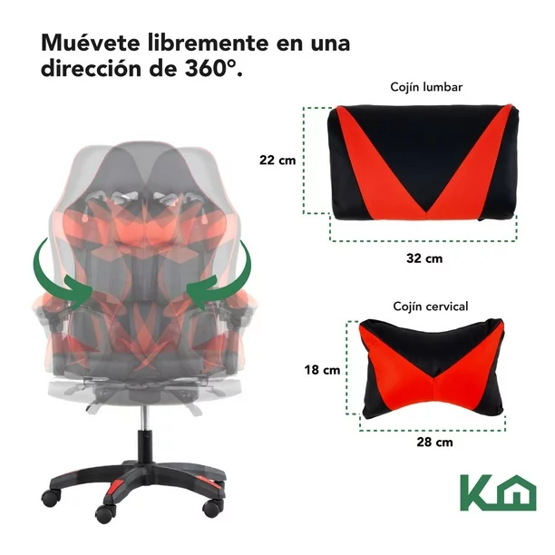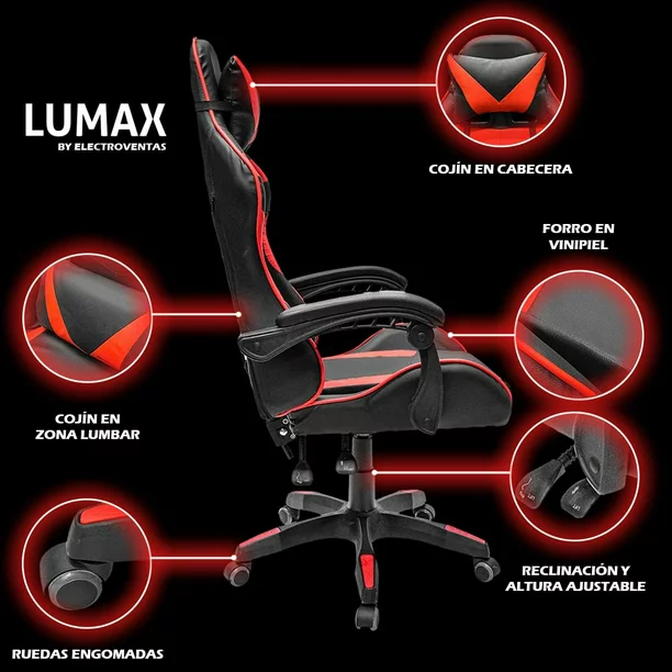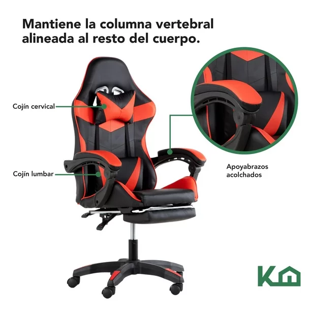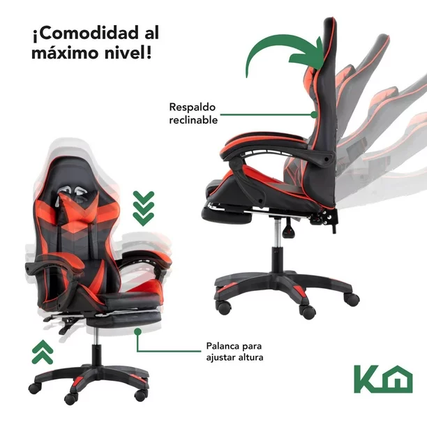 • Inspirado en los asientos de automóviles de carreras, silla envolvente con respaldo alto y soporte lateral que lo mantendrá derecho y con buena postura.