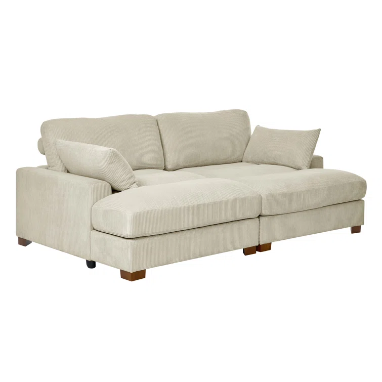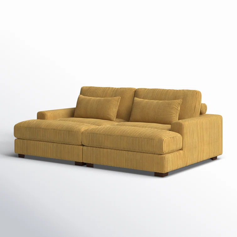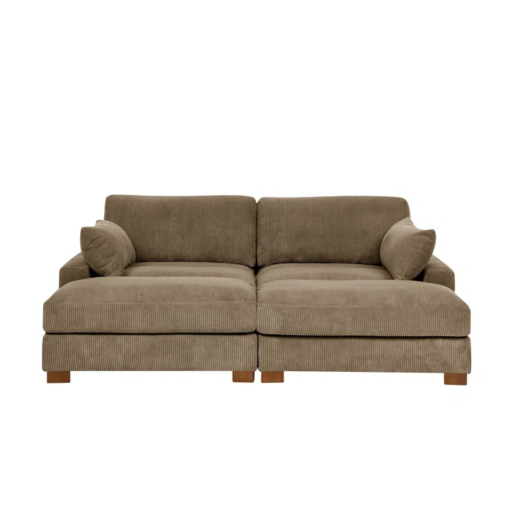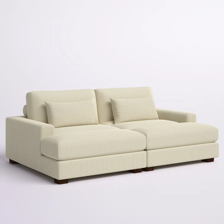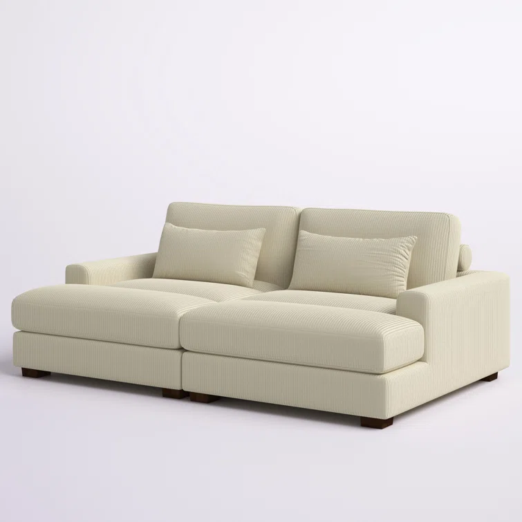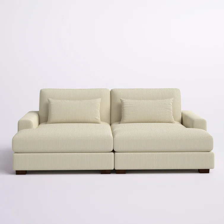 Este sofá convertible aporta espacio adicional para dormir y un estilo glamuroso a tu salón. Diseñado para acomodar a dos personas como sofá, se convierte en una cama doble ideal para huéspedes que pasan la noche. Está fabricado con un marco de madera de ingeniería y se asienta sobre pies de bloque de madera maciza con un acabado marrón. Este sofá está envuelto en tapicería wika de pana en un tono neutro y sus cojines están rellenos de espuma y sostenidos por resortes helicoidales para ayudar a evitar que se hunda con el tiempo. Este sofá cama tiene brazos cuadrados, un respaldo acolchado e incluye dos almohadas para una apariencia elegante al instante.