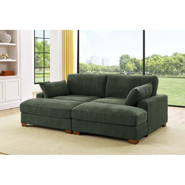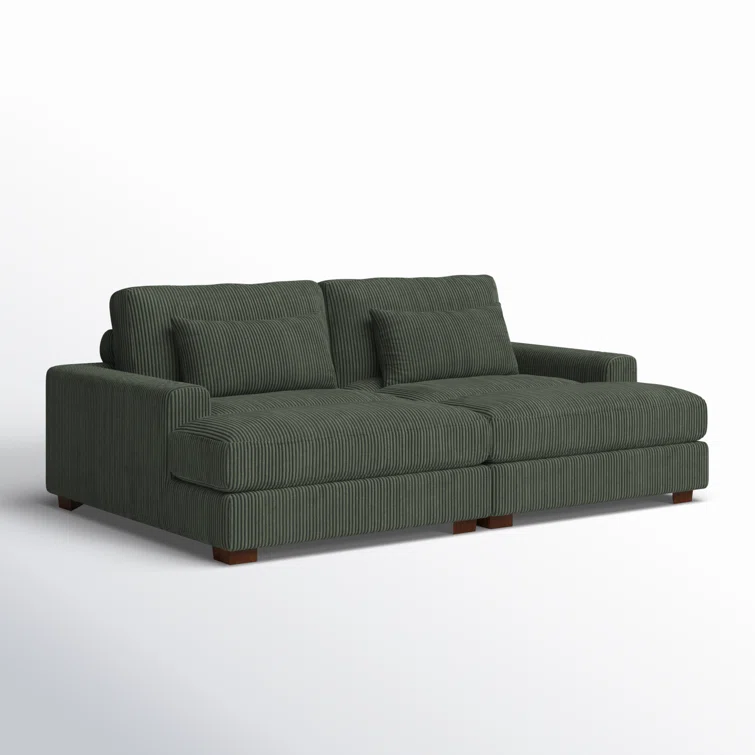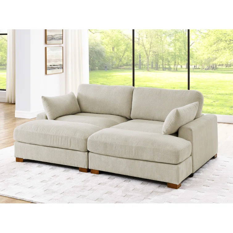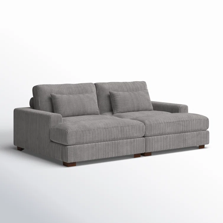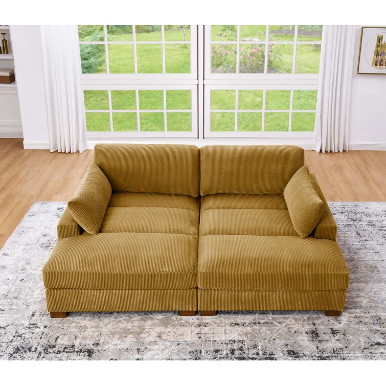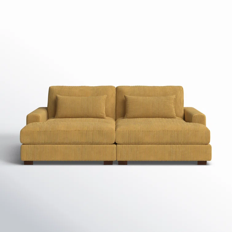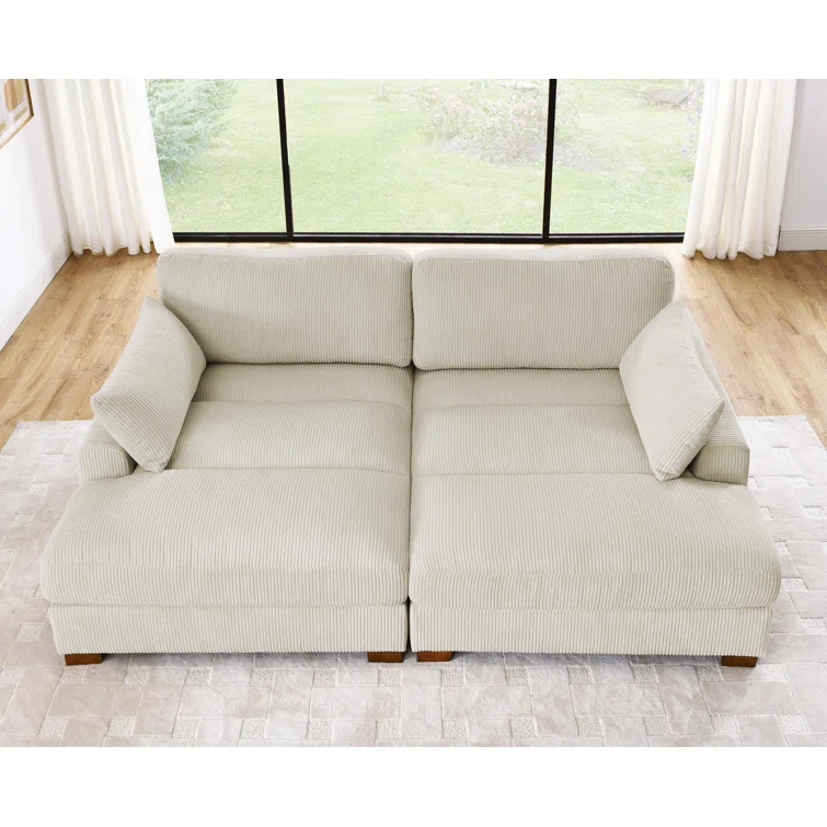 Este sofá convertible aporta espacio adicional para dormir y un estilo glamuroso a tu salón. Diseñado para acomodar a dos personas como sofá, se convierte en una cama doble ideal para huéspedes que pasan la noche. Está fabricado con un marco de madera de ingeniería y se asienta sobre pies de bloque de madera maciza con un acabado marrón. Este sofá está envuelto en tapicería wika de pana en un tono neutro y sus cojines están rellenos de espuma y sostenidos por resortes helicoidales para ayudar a evitar que se hunda con el tiempo. Este sofá cama tiene brazos cuadrados, un respaldo acolchado e incluye dos almohadas para una apariencia elegante al instante.