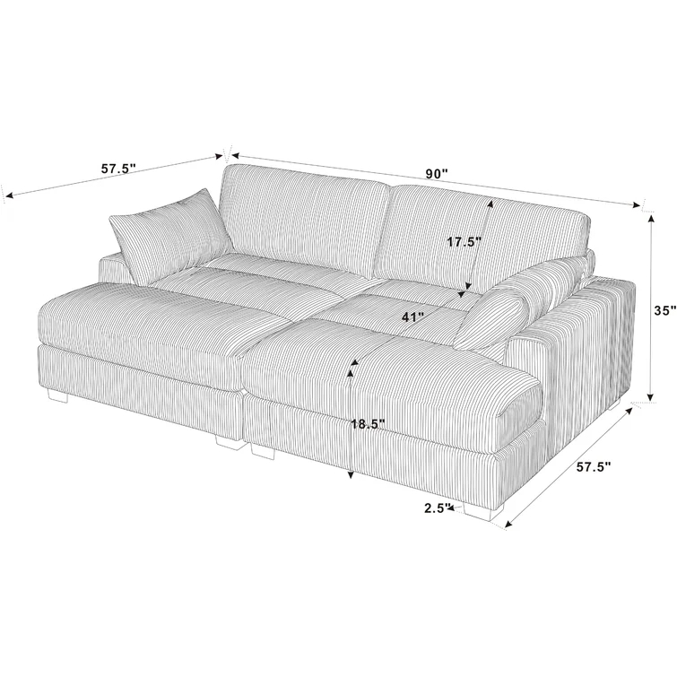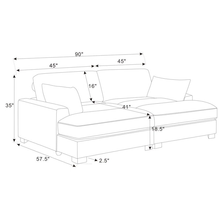 35'' alto x 90'' ancho x 57,5'' profundidad
