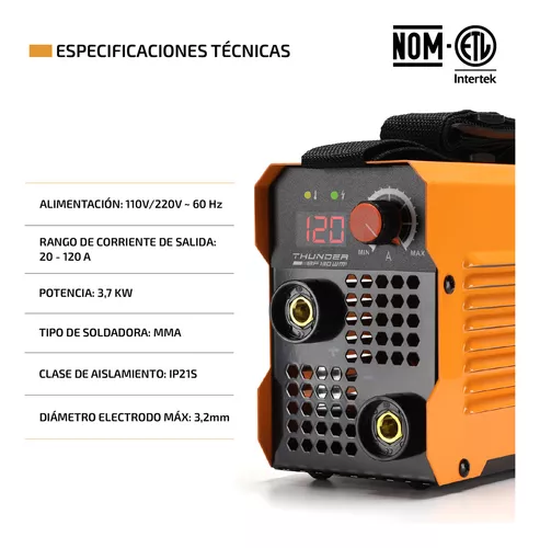 • Rango de corriente de salida: 20 - 100 A @ 127 V / 20 - 120 A @ 220 V