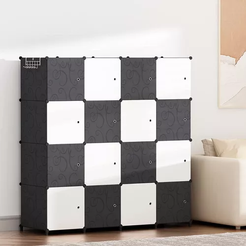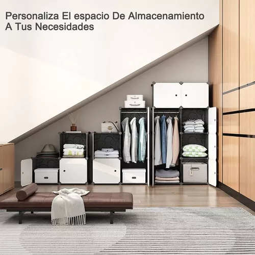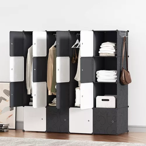 Armario De Plástico Portátil Closet Organizado Con 16 Cubo Color Negro