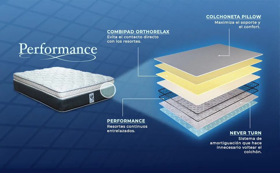 - TECNOLOGÍA PERFORMANCE: Resortes continuos que ofrecen mayor estabilidad y durabilidad.