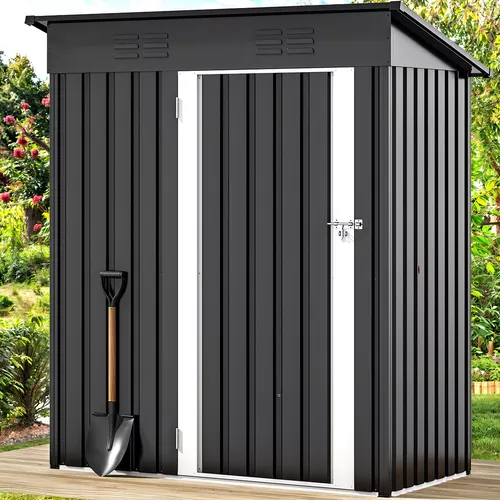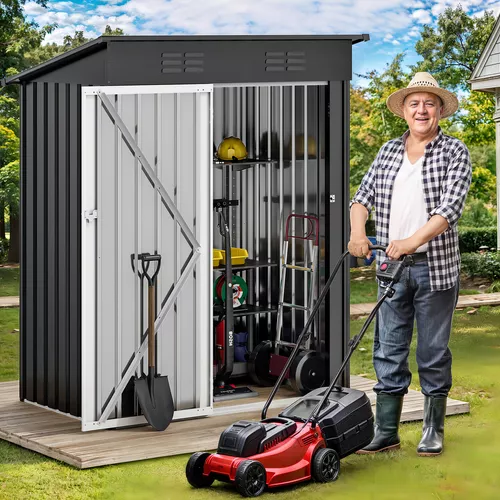 Cobertizo de almacenamiento de metal para exteriores, 5 x 3 pies, cobertizos de herramientas con cerradura con ventilación para jardín, patio, césped para almacenar basura, cortadora de césped.