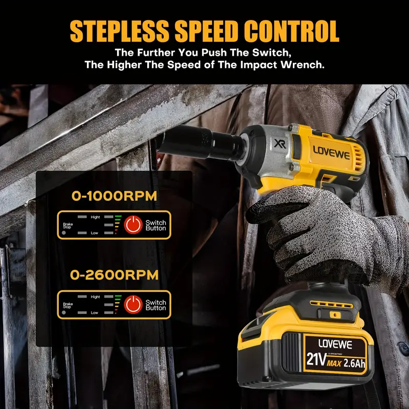 ![Llave de impacto inalámbrica , 21V 1/2 2600RPM, controlador de impacto de potencia sin escobillas, par 258 pies- 350N.m, con 2x2.6Ah batería, cargador, 6 enchufes y accesorios completos, pistola de impacto eléctrica para automóvil y hogar detalles 4]()