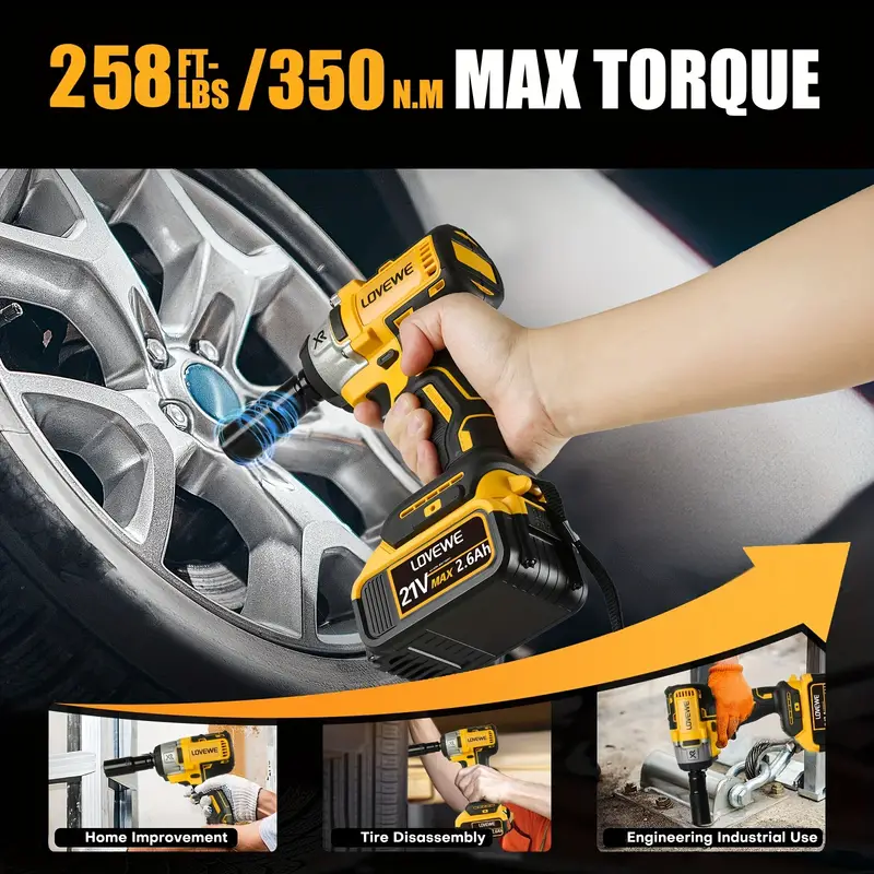 ID del artículo: GR206671![Llave de impacto inalámbrica , 21V 1/2 2600RPM, controlador de impacto de potencia sin escobillas, par 258 pies- 350N.m, con 2x2.6Ah batería, cargador, 6 enchufes y accesorios completos, pistola de impacto eléctrica para automóvil y hogar detalles 0]()