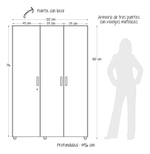 Medidas: 120 cm Ancho x 180 cm Alto x 48,8 cm Fondo