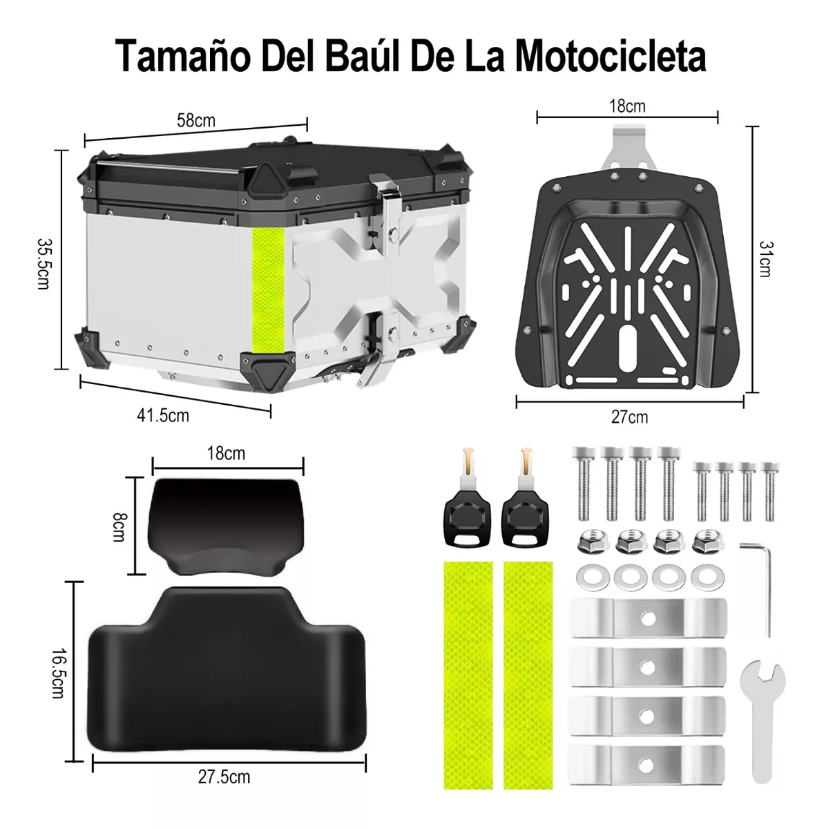 Caja Moto Top Case Aluminio Baul Con Respaldo Para 2 Cascos