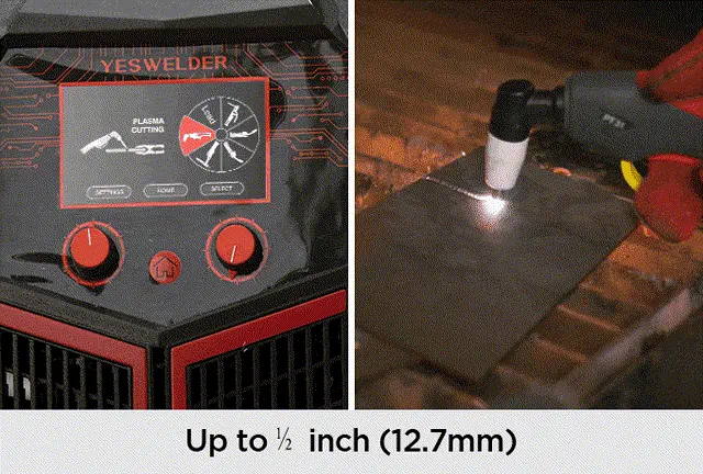 Y cambiar entre los estilos de soldadura y corte por plasma es muy fácil. Basta con girar el dial para seleccionar el icono a todo color que necesite. Las imágenes son intuitivas y fáciles de reconocer, por lo que siempre queda claro qué estilo ha seleccionado. Y puede elegir fácilmente el tipo de gas y controlar claramente los niveles de gas.